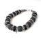 Collana realizzata con quattro perle in vetro soffiato di forma allungata e modellate a caldo in modo da risultare leggermente arrotondate. Anche i distanziatori sono in vetro di Murano soffiato a bocca e modellato a mano. Il cavo interno è in acciaio e la chiusura a vite in materiale anallergico.